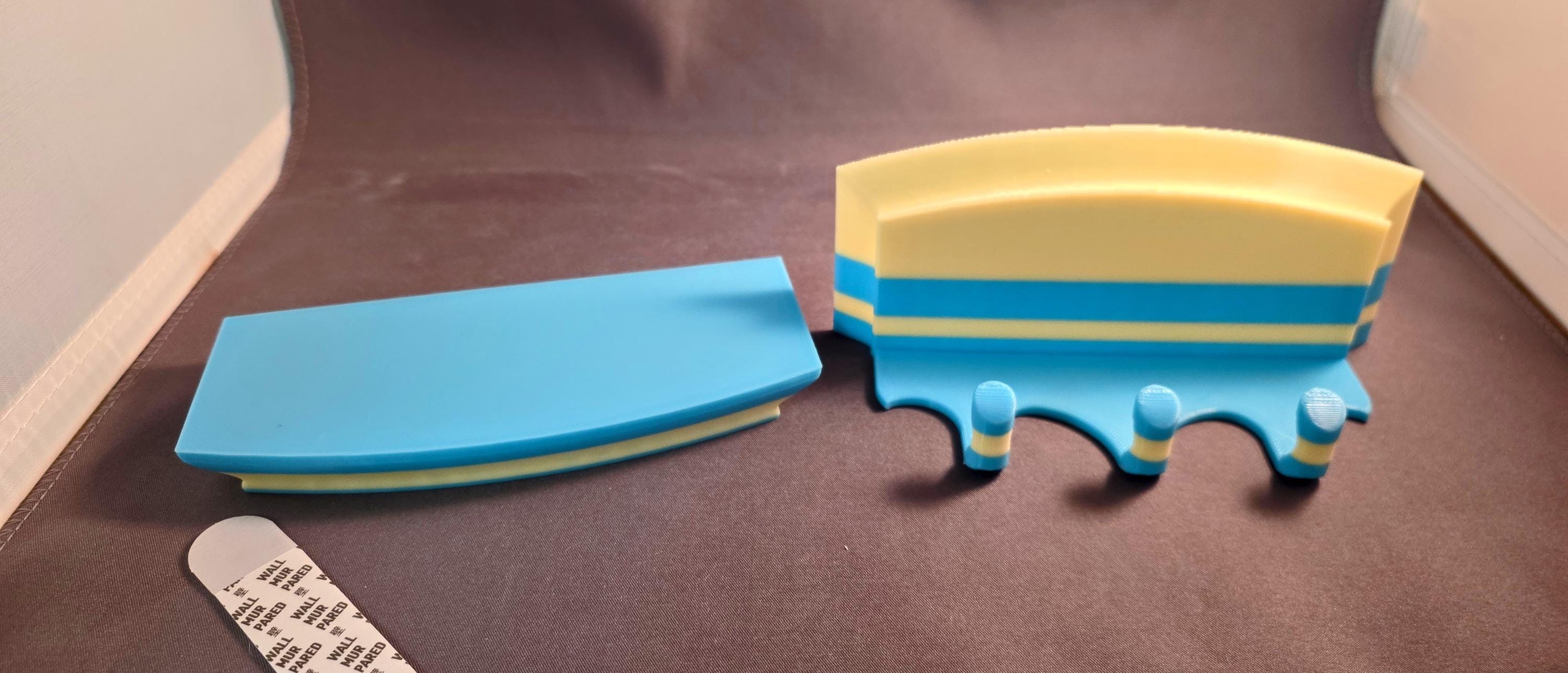 This is a custom design to help organize your entry way. It doubles as floating shelve and a key hanger. The best part... you can simply pull off the outer part and hide whatever you want. The colors can be mixed and match to your liking with a request in my messages. Give me some colors or color and I can make it happen. It Attaches to the wall with a simple command stip. (Item includes (1) command strip.