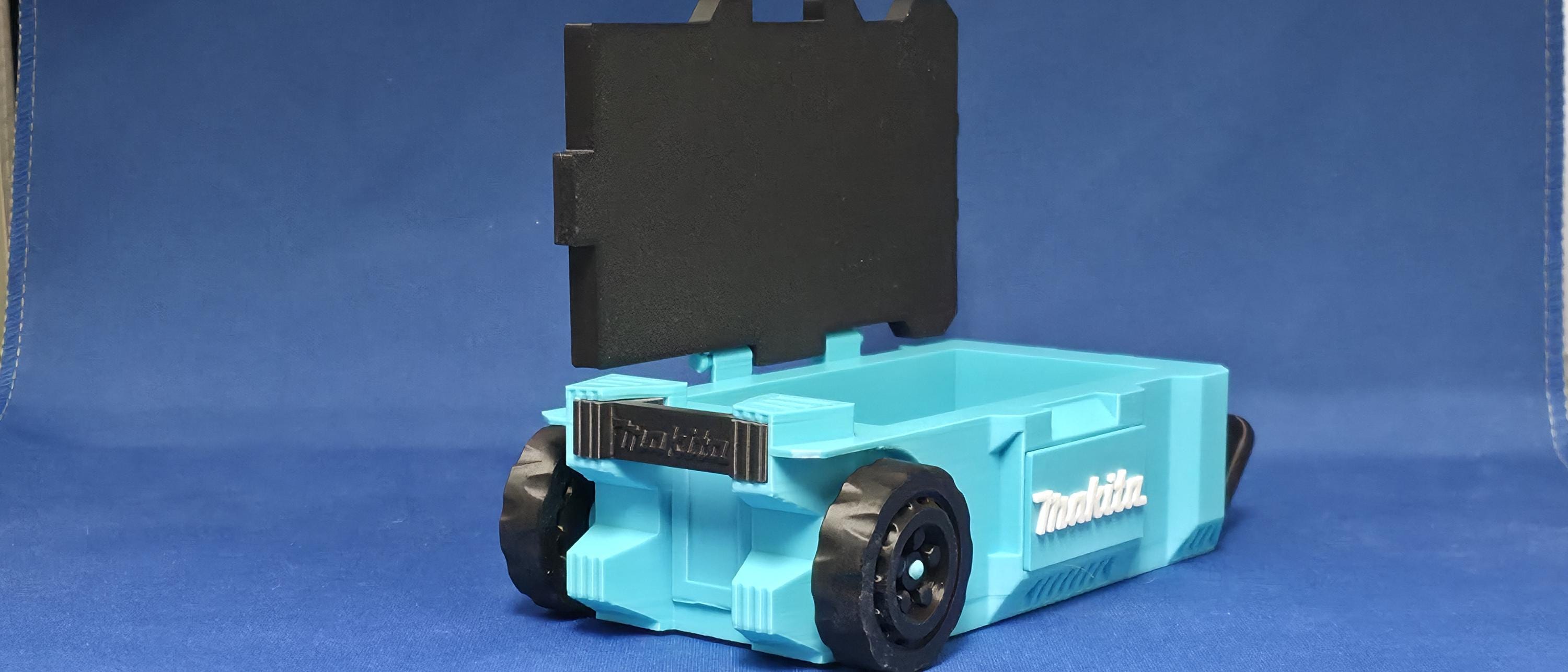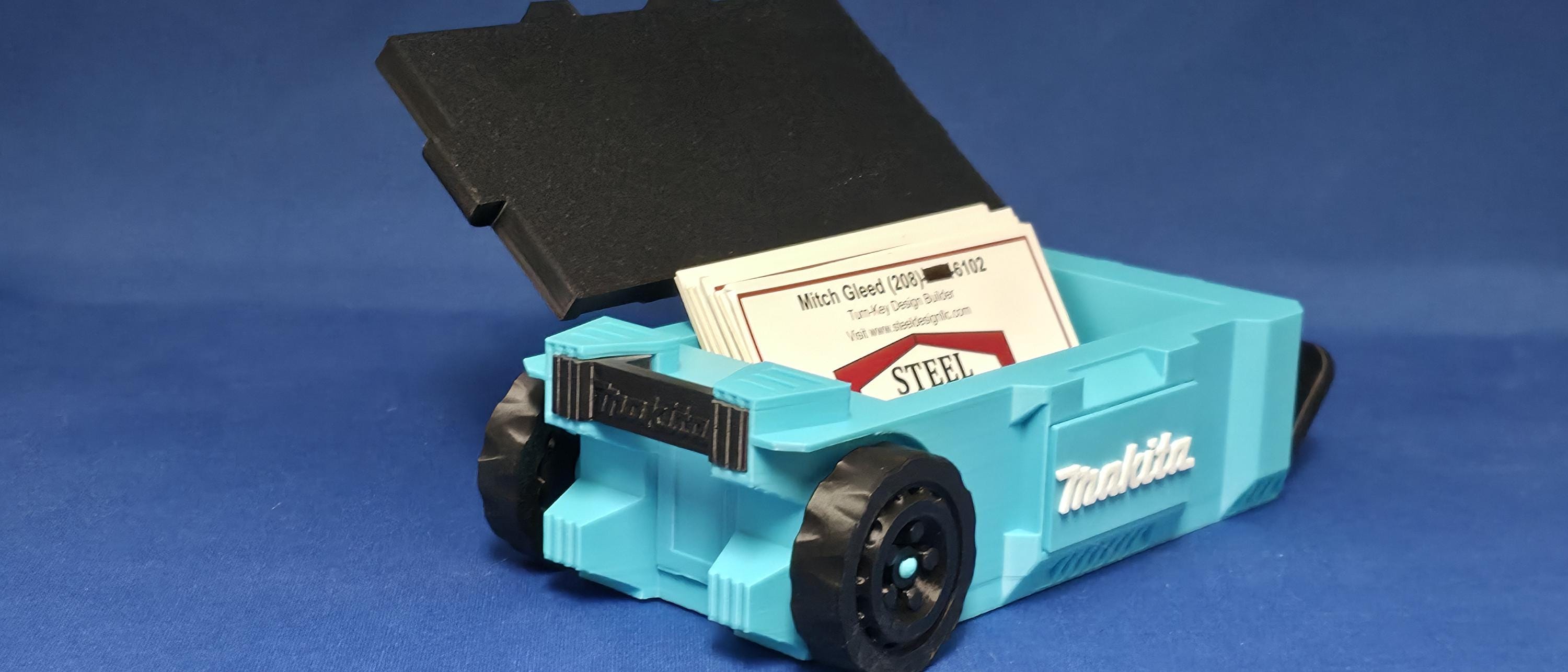 The 3D printed Makita business card holder represents a unique amalgamation of artistry and utility, designed thoughtfully to mimic the esteemed Makita Maktrak rolling tools chest. This vibrant accessory, available in striking colors, accommodates standard-sized business cards, making it a functional yet visually captivating addition to any professional's desk. Beyond its primary purpose, the piece serves as an innovative catch-all for miscellaneous items on a nightstand, showcasing its versatility. The inclusion of operational wheels and a practical lid enhances its allure, ensuring that this product is not only aesthetically pleasing but also a conversation starter, capable of leaving a lasting impression on clients and colleagues alike.