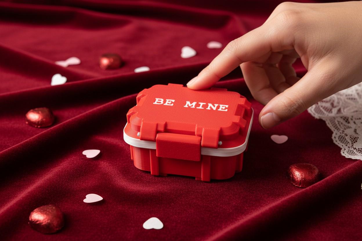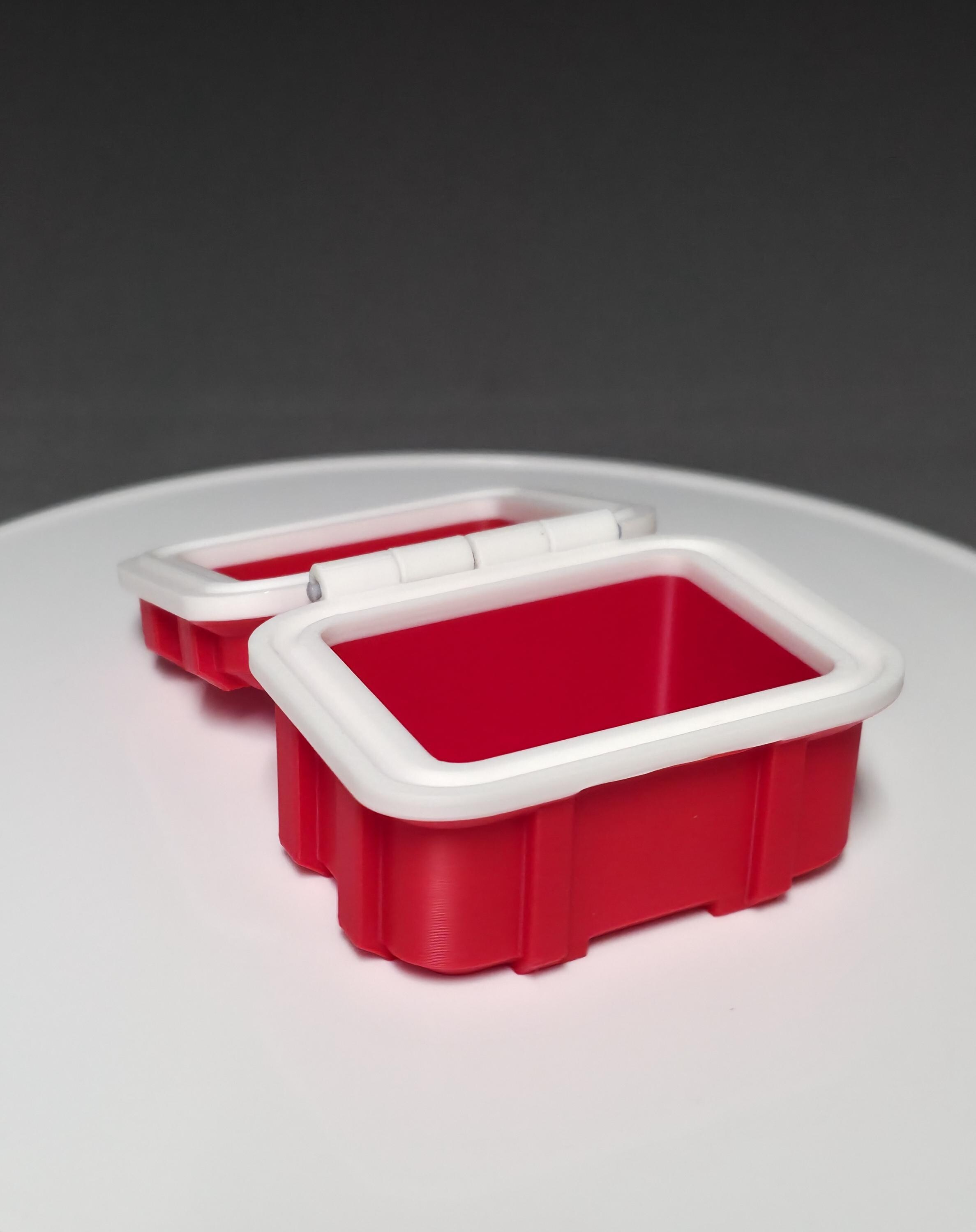 This 3D printed rugged box makes an ideal gift for someone special. It is designed to accommodate a ring, necklace, or any small token of affection. The striking red and white colors ensure it will capture attention. Additionally, the box features a customizable option, allowing you to personalize the top with a unique design or message.